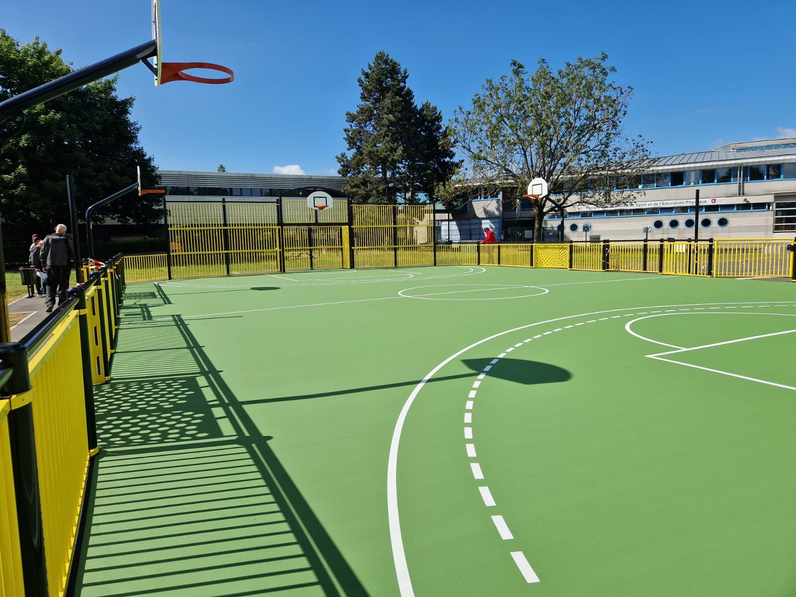 Exit le plateau multisports et les courts de tennis. Place à un Citystade, à une aire de cross training et à un terrain polysport composé d’une aire de teqball et de deux citystades, dont l’un permet la pratique du hockey. Au centre, une piste en enrobé de deux anneaux et trois lignes droites de 52,5 mètres. « Le cahier des charges de l’Université était très précis quant à la destination du site, nous avons donc concentré nos efforts sur l’adaptation et l’implantation des équipements ». La principale difficulté du chantier consistait à renforcer les sols. Osmose s’est appuyé sur le savoir faire et l’expérience de l’entreprise Plaetevoet et de son sous-traitant Polytan, à l’origine des sols souples et des revêtements en résine posés au printemps.