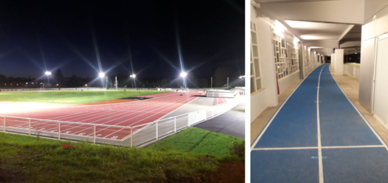 « Il faut admettre que le stade avait besoin d’une sérieuse reprise en main », confie Fabien Chetanneau, qui s’est occupé de la refonte des pistes au côté du cabinet d’architectes nantais Déesse 23, chargé de la tribune, des vestiaires et du club house. « La mission d’Osmose s’est portée sur la réfection de l’anneau de course (six couloirs) et des trois couloirs d’échauffement situés en bordure de piste. L’équipe a fait le choix de conserver l’ancienne sous-couche sur laquelle un nouveau revêtement a été coulé. Sage précaution, compte tenu du sous-sol sablonneux sur lequel le stade a été construit. Les couloirs indoor, abrités par la tribune, ont également été réhabilités par Osmose.