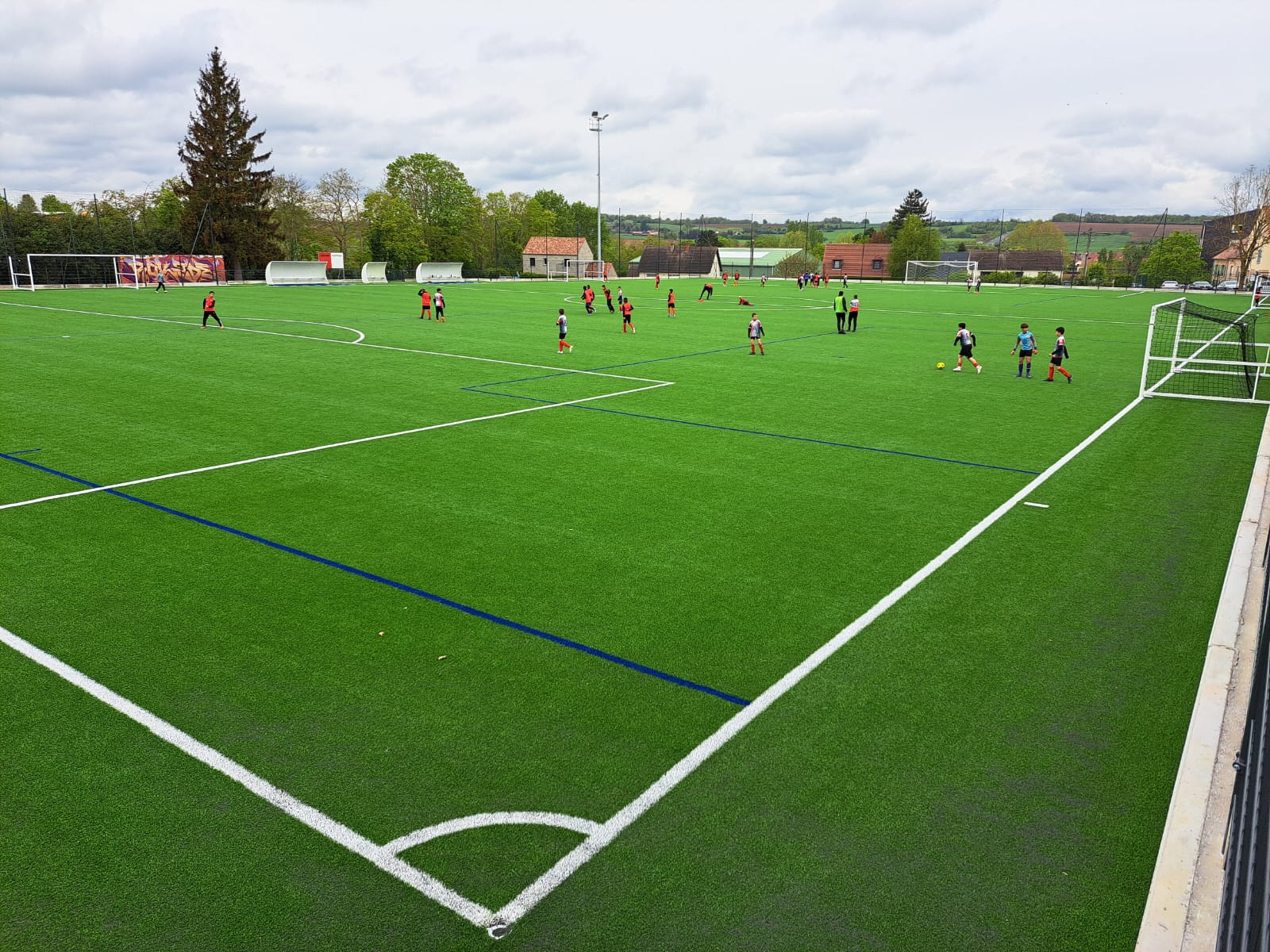 « L’équipement fait partie des chantiers qu’il a fallu mettre entre parenthèses cet hiver en raison des intempéries », précise Richard Caron, directeur associé d’Osmose. Le terrain, qui accueille les entraînements de l’équipe locale et les compétitions des jeunes footballeurs, a été agrandi grâce à l’installation de murs de soutènement en remplacement d’un talus encombrant. Quatre nouveaux mâts d’éclairage ont aussi été installés.